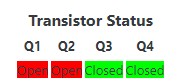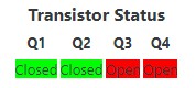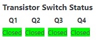 As you can imagine, nothing happens. P-channel MOSFETs behave as a normally closed (conducting) switch that opens (non-conducting) when a voltage is present at the gate. Since no voltage is present at the gate of Q1, Q2, Q3, or Q4, the “switches” are all closed and any current that arrives will be readily conducted.