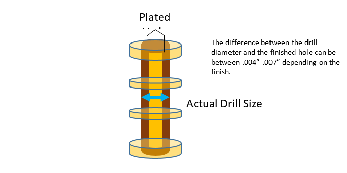 - For immersion finishes, like ENIG, ENEPIG or Silver, the drill size is .004” bigger than the finished hole size.