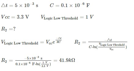 Our goal is to design an RC circuit that transitions between Vcc and Logic Low in 5ms or greater.