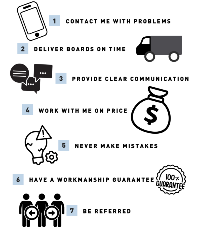 2. Deliver boards on time.