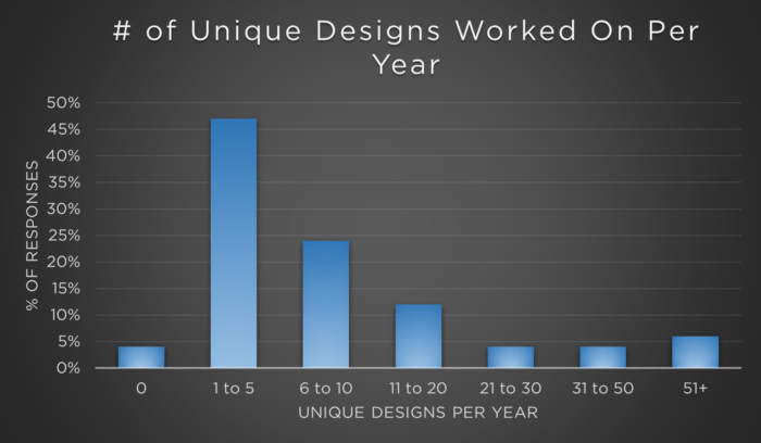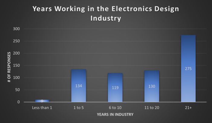 Nearly 60% of today’s design engineers are 45+ years old with an average of 19 years of experience. These engineers work on at least 2 new product design each month and order board quantities of 200-300. The survey also highlights younger engineers with less experience seeking smaller companies for first jobs rather than large companies.