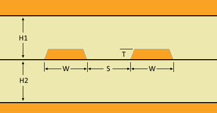 • Thickness of the prepreg or core material on either side of the copper trace